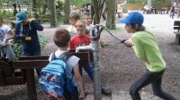 -Zabawy na placu rekreacyjnym. Odkopywanie szkieletu dinozaura