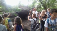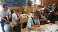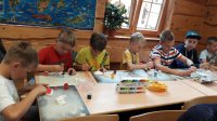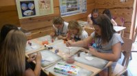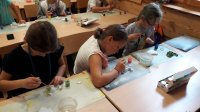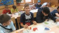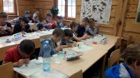 -Lekcja edukacyjna: oglądanie różnych skamielin, malowanie odlewów gipsowych skamielin i dinozaurów